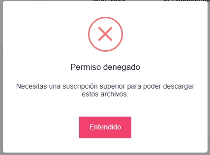 Tabla de permisosSi un socio con un plan que no tiene permisos para realizar una acción interactúa, saltará un aviso: