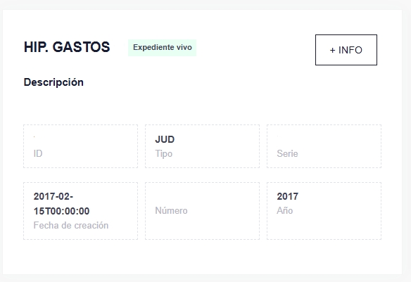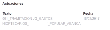 Si se hace click en "+INFO" se desplegará el procedimiento mostrando las actuaciones del mismo: