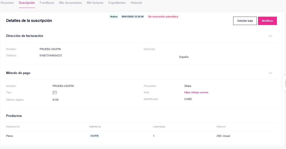 Mi perfil - Suscripción - Solicitar bajaDIRECCIÓN DE FACTURACIÓN