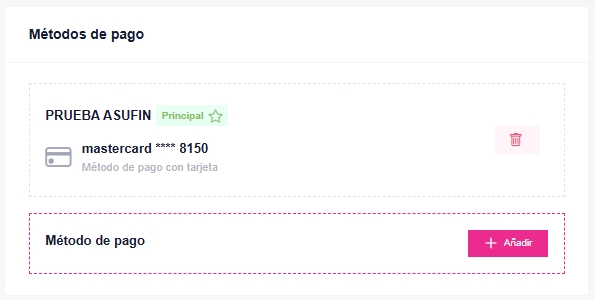 Mi perfil - Suscripción - Dirección de facturaciónMÉTODO DE PAGO