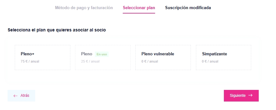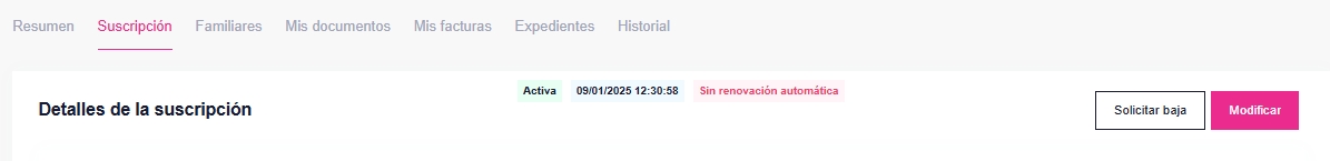 El socio, de manera manual, podrá gestionar su suscripción bajo 2 casuísticas: