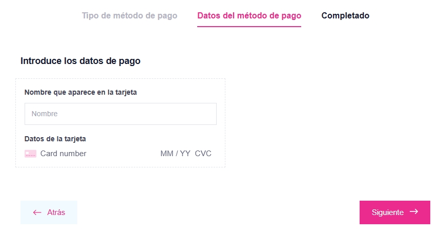 Si el proceso se ha realizado con éxito, volverá a la pantalla de añadir método de pago y dirección de facturación