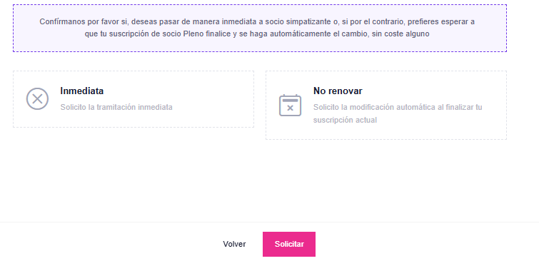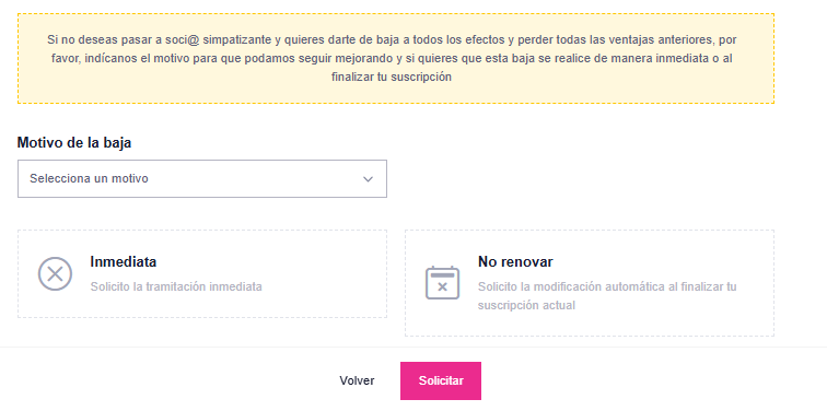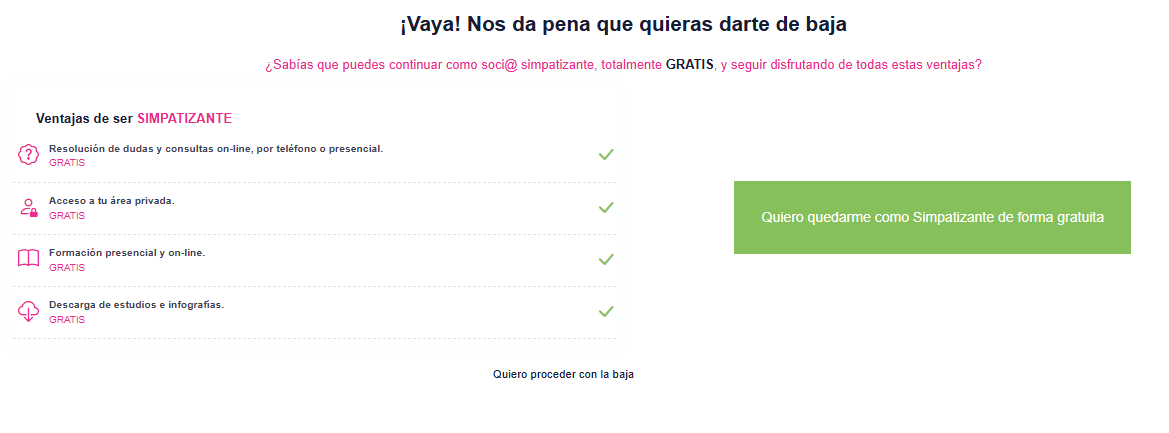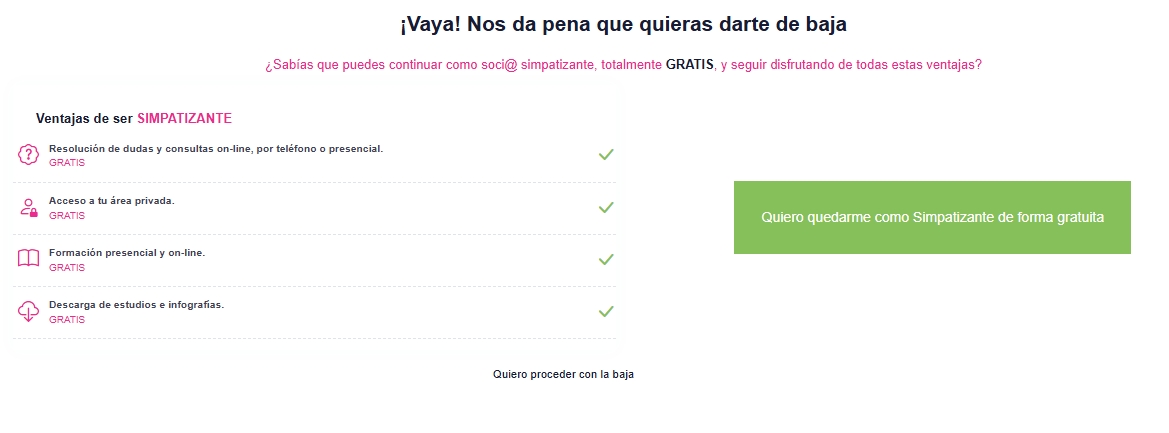 El socio podrá quedarse como simpatizante de forma gratuita o proceder con la baja