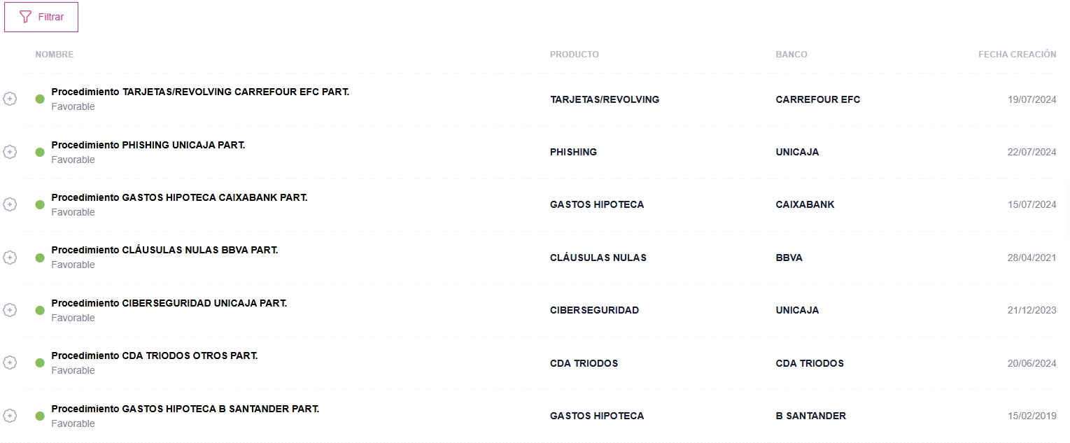 Procedimientos - FiltroPara entrar a ver un procedimiento, se podrá realizar de 2 formas: