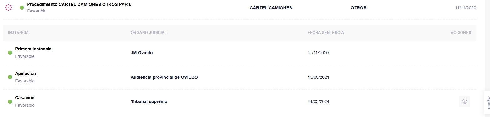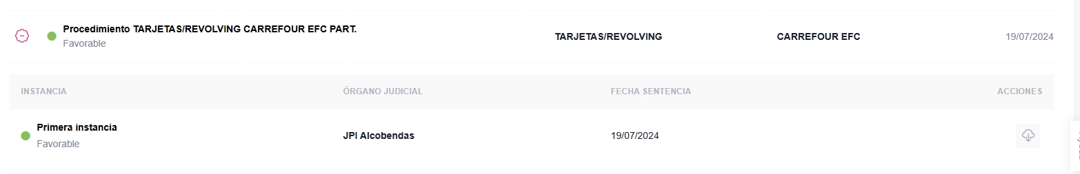 Por cada instancia, en la parte de acciones, hay un icono de descargas, que dependiendo de los permisos del socio se podrá utilizar o no, y de si hay algún archivo adjunto o no.